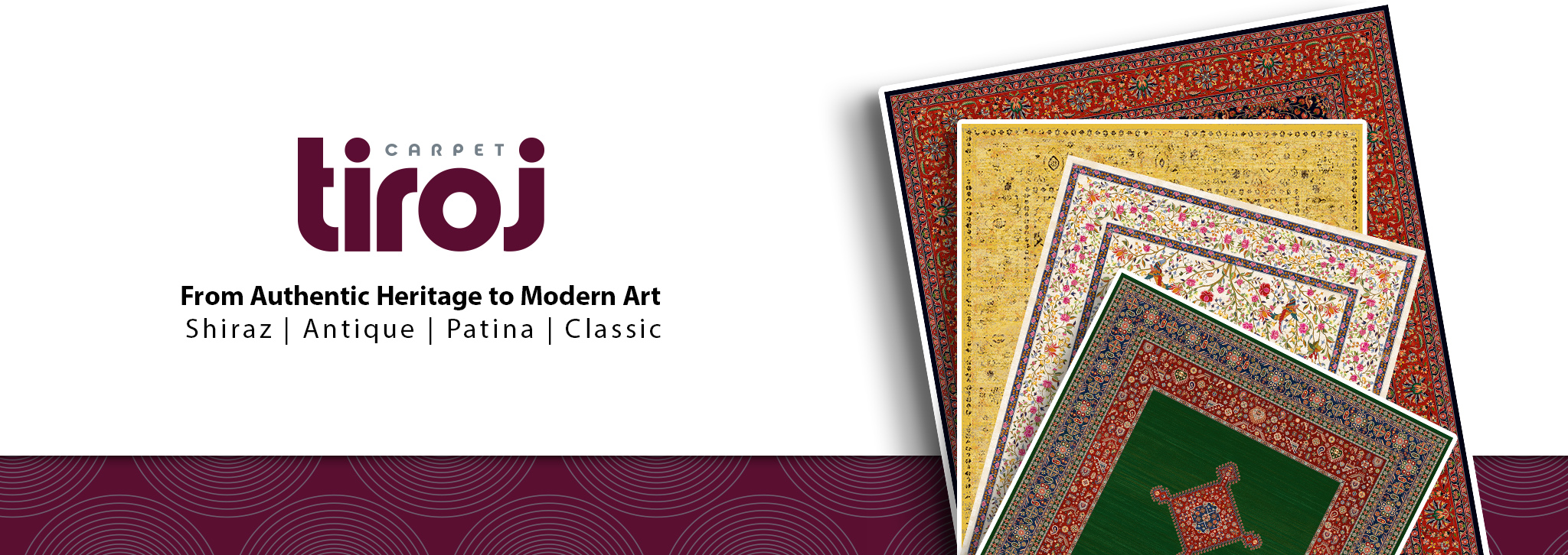 New Tiroj brand new brushes Read more 601136 Lotus Design Read more 601110 Gol Farang Design Read more 601126 Farnia Design Read more 601139 Shamse2 Design View the designs and sizes of Tiroj factory carpets. Other rugs Read more 600110 Sarvenaz Design Read more 600115 Clark_Safavid Design Read more 600164 Delroba Design Read more 600162 Qajar Design Read more 600165 Afshan Read more 600171 Terme Design Read more 600174 Howz Design Read more 600112 Haris Design