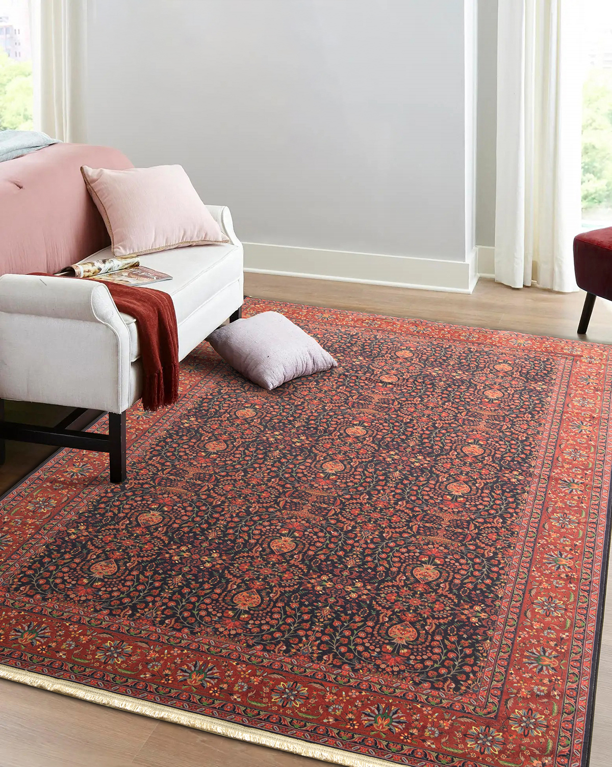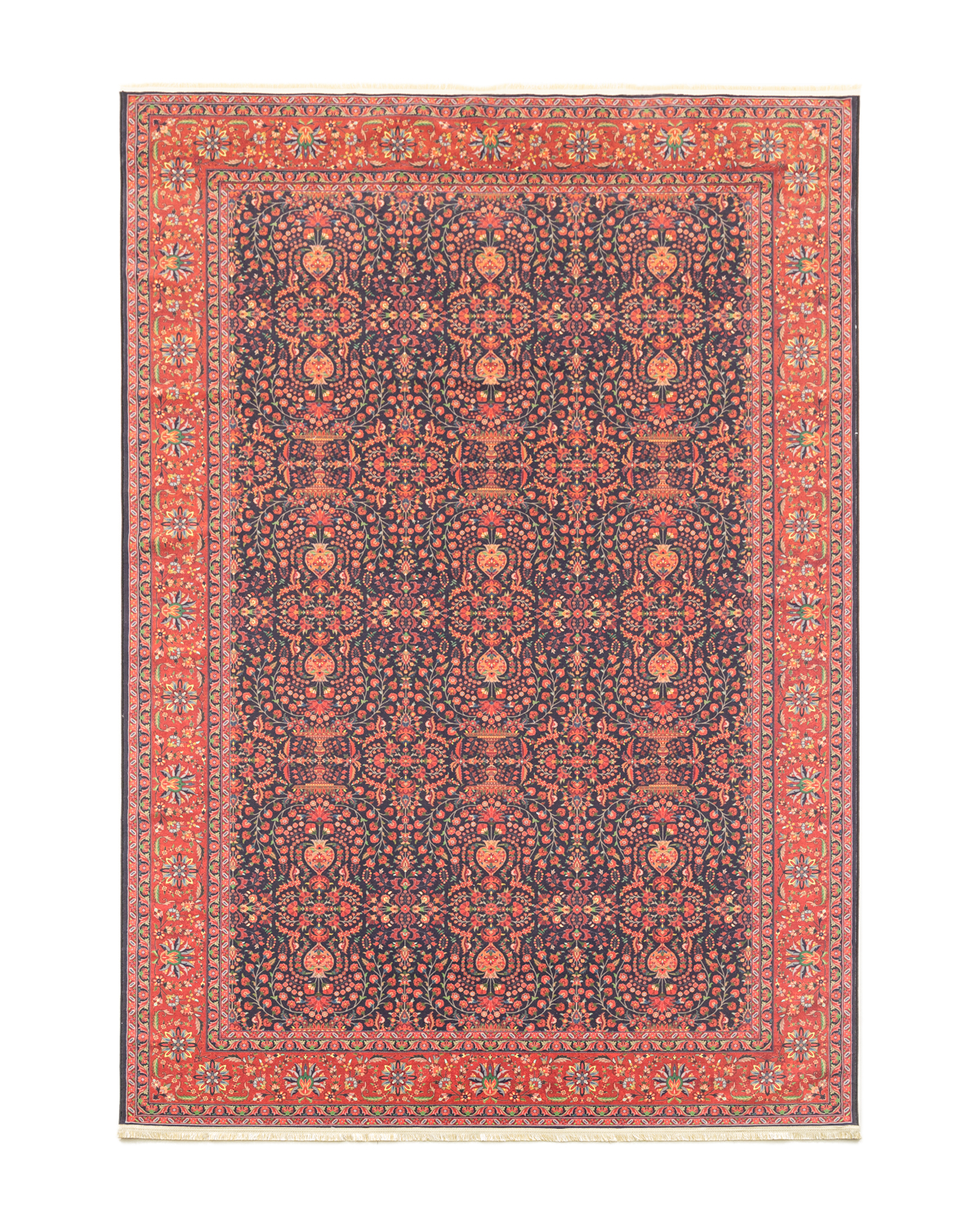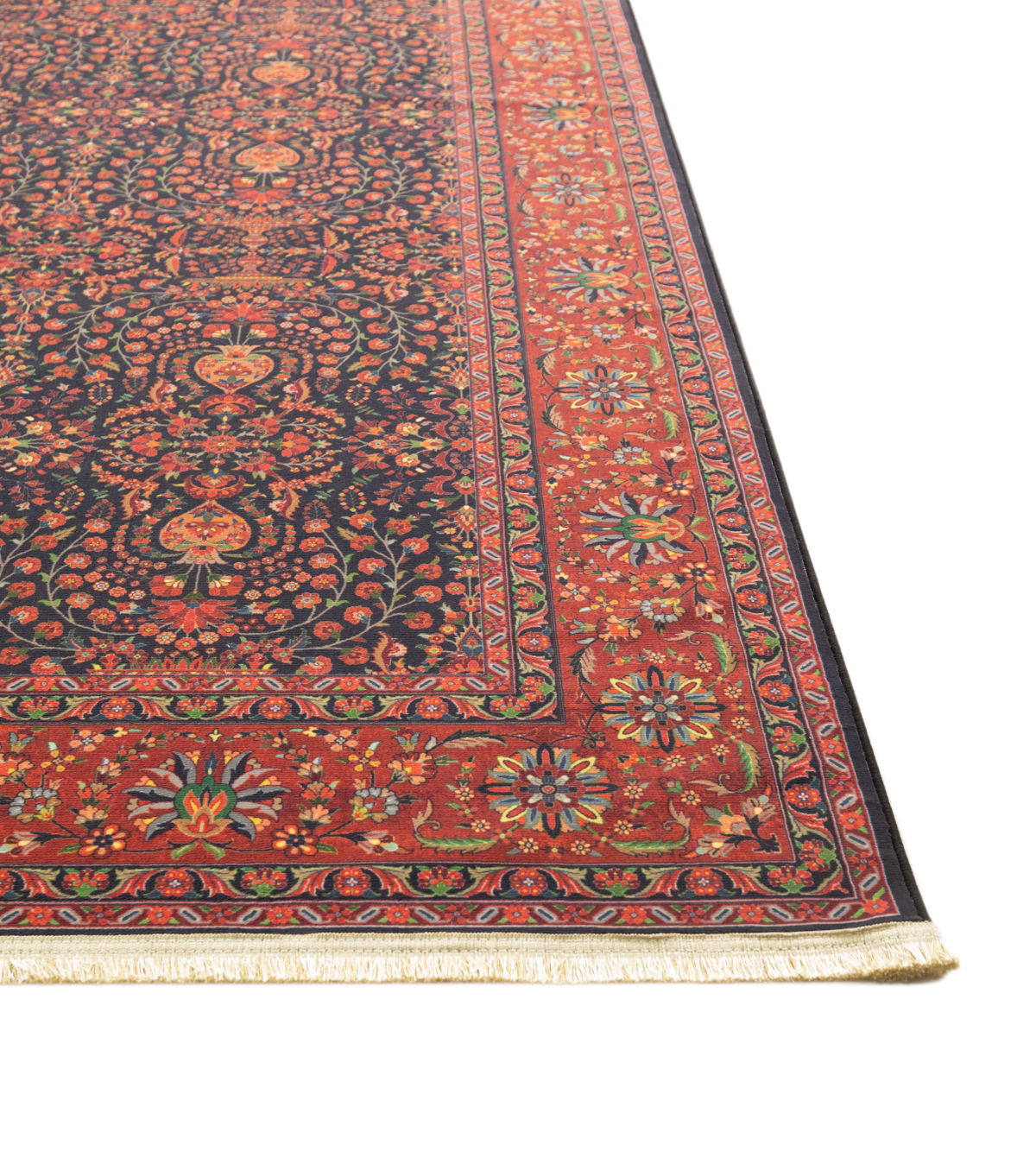 فرش ماشینی کد ۶۰۱۱۱۱ با وجود نقش و نگارهای سنتی زیبایی که در تمام زمینه فرش طراحی شده، منظره ای چشم نواز و فرح بخش ایجاد کرده است. این فرش ماشینی، با طرح سنتی خود به خانه ی مدرن شما روحی از جنس اصالتی و فرهنگ و هنر ایرانی میدمد. فرش ماشینی کد ۶۰۱۱۱۱ با استفاده از نخ پنبه و پلیاستر تشکیل شده است. استفاده از این الیاف باعث شده است فرش علاوه بر مقاومت و استحکامی که دارد بسیار نرم و انعطاف پذیر باشد. این فرش زیبا و جذاب، با کیفیتی که دارد میتواند سالیان سال مهمان خانه های شما باشد و همیشه فضای خانه ی شما را گرم و صمیمی نگهدارد.